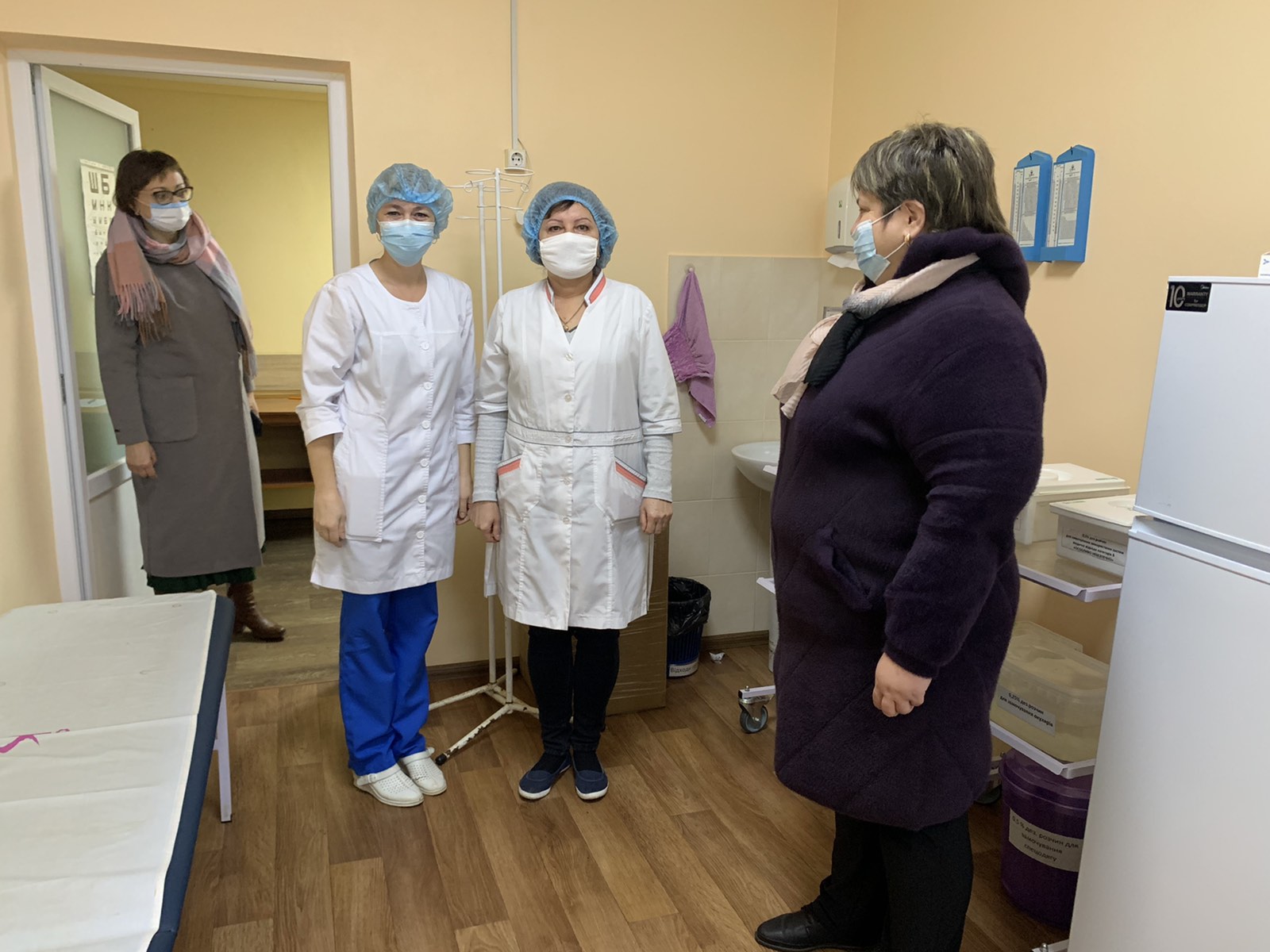 На виконання доручення голови облдержадміністрації Вячеслава ЧАУСА голова райдержадміністрації Геннадій ЛУЦЕНКО, перший заступник голови райдержадміністрації Володимир ЧЕРНОВ, керівник апарату райдержадміністрації Світлана АЛЕКСАНДРОВА перевірили роботу центрів вакцинації населення, пунктів щеплень району щодо облаштування місць проведення щеплень, технічне забезпечення обладнанням для зберігання вакцин, умови управління інформацією та інформаційної підтримки.